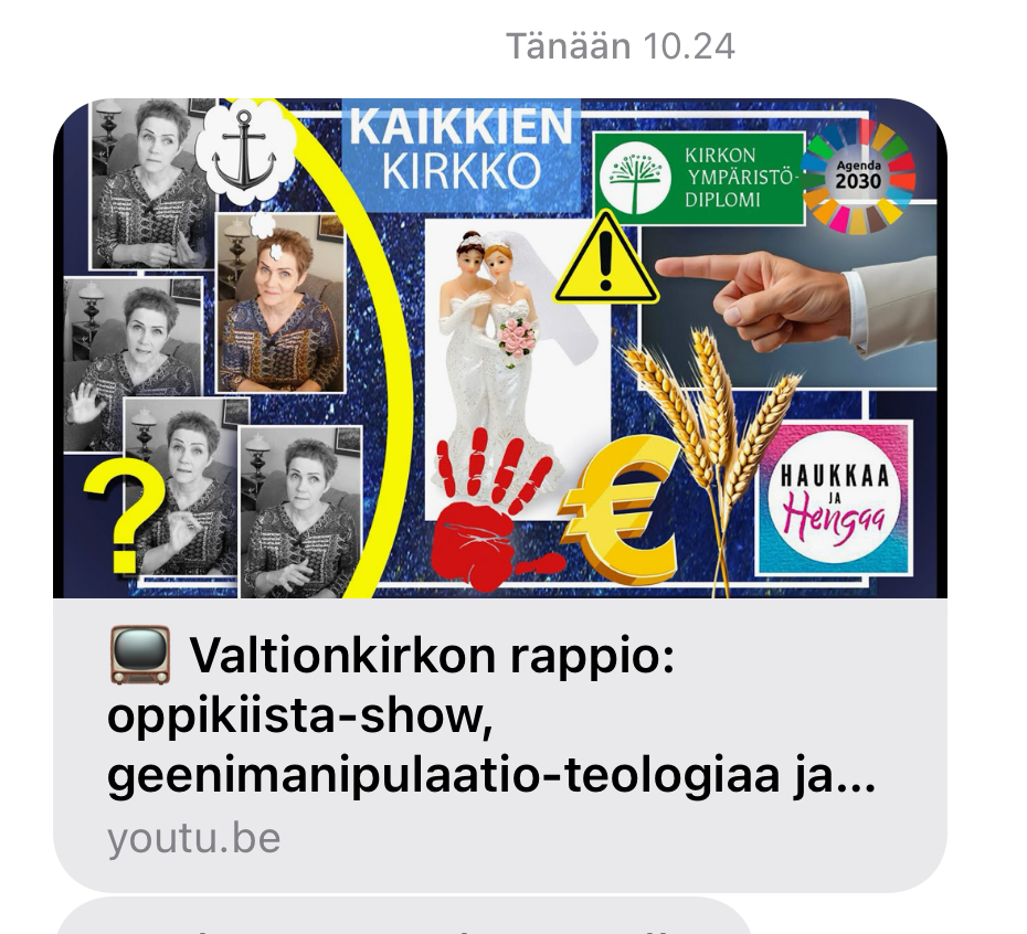 Luennolla ”Muuttumaton muutoksessa” mainittu piispa Laajasalon ajatusten siteeraus sai sisimmässäni aikaan oikean tunnemyrskyn. Kuinka ihmeessä piispa (ja piispat) voivat opettaa Raamatun sanan ja opetuksen vastaisesti kirkossamme? Ajattelenkin tämän käytännön olevan yksi keskeisimmistä syistä ihmisten kirkosta eroamiselle, ja tämä on kovin surullista.