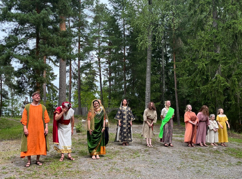 To 22.6.2023 koimme puhuttelevia (syvästi koskettavia) tapahtumia musiikkinäytelmien Aurinkoranta sekä Salomen valinta esitysten myötä. Monien silmät kyyneltyivät ja sydänalassa sykähteli arjen evankeliumin teot, sanoma ja Raamatun tapahtumat. Raamattukylän esityksistä vastaavat vapaaehtoiset vuodesta toiseen. Iso kiitos esitysten käsikirjoittajalle Anna-Mari Kaskiselle sekä esitysten ohjauksesta vastaavalle Matias Nymanille. Todella kunnioitettavaa uskollisuutta Jumalan valtakunnan työn eteenpäin saattamiseksi. ISO KIITOS kuuluu toden totta myös Hänelle joka säät ja ilmat säätää.