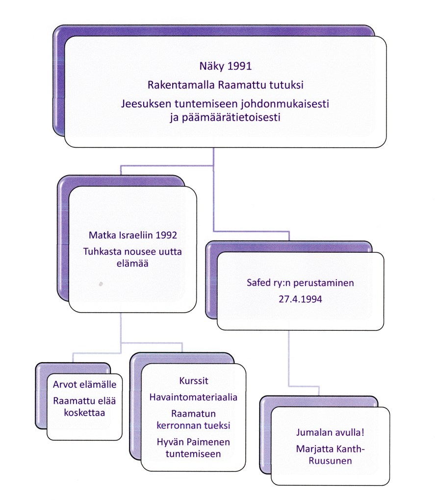 Jesajan kirjan rohkaisevat sanat saivat ottamaan uusia askeleita kutsumukseni tiellä. Marraskuussa 1997 olin ostanut metsärahoillani Hollolan Soramäestä, Kiinteistö Oy Vesalan keskuksesta 95m² liikehuoneiston Safed ry:n kokous- ja näyttelytoimintaa ajatellen. Samasta kiinteistöstä tuli lokakuussa 2000 myyntiin 42 m² liikehuoneisto. Sijoitin tähän huoneistoon saamani perinnön, joka oli eurolleen kauppahinnan suuruinen. Tila sai palvella Safedin verstastilana toistakymmentä vuotta.
