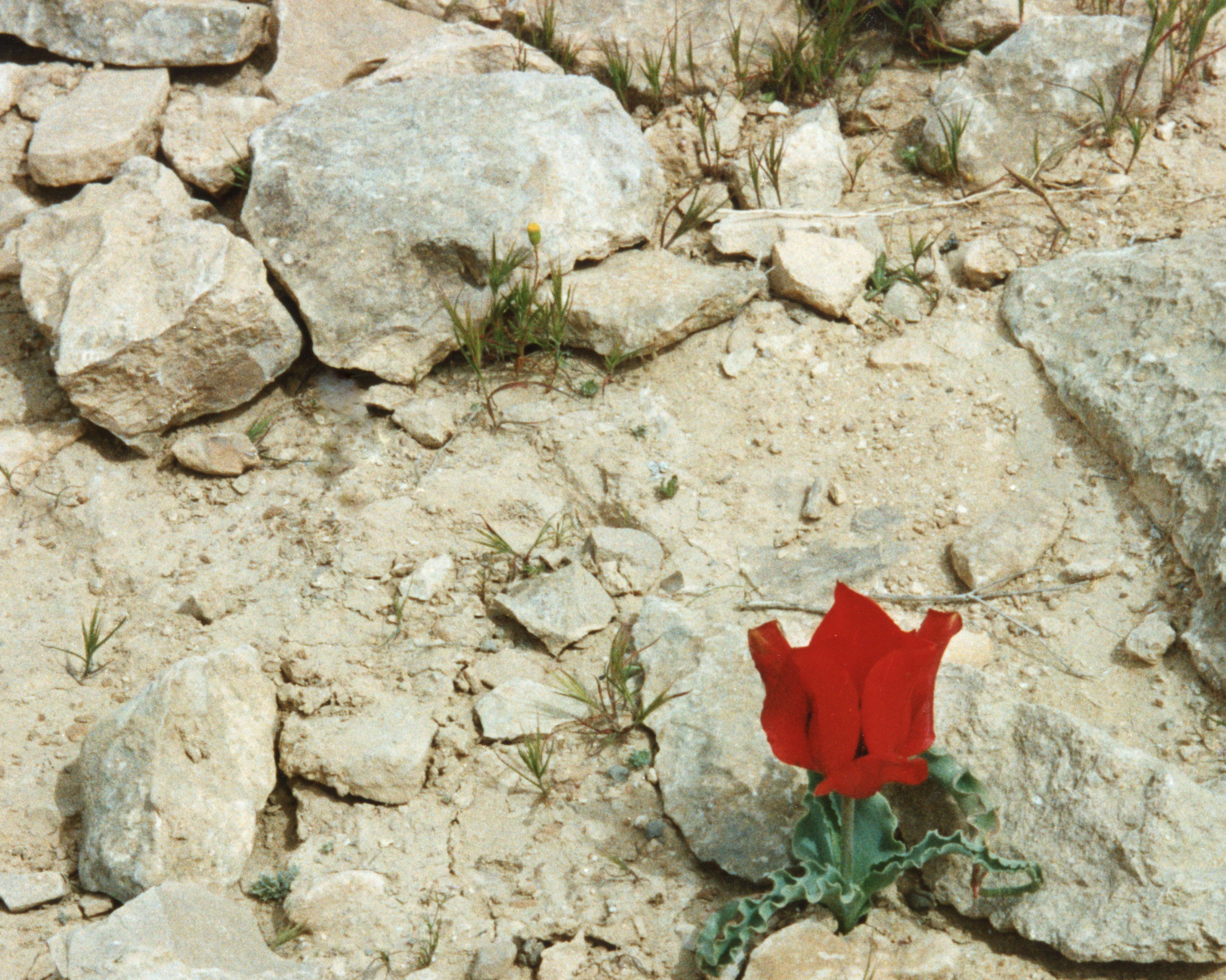 Valmistellessani kevättalvella 1994 ´Raamattu elää koskettaa´ -näyttelyäni minun tuli valmistautua siihen mielestäni aika erikoisella tavalla: helmikuussa matkustin mummolaan, katkoin omenapuun ja lehtikuusen oksia, jotka sitten kotona asettelin veteen ´jalostumaan´. Seuraava projekti oli valmistaa velipuoleni kanssa kuvassa näkyvä iso risti ja etsiä mummuni veljen tekemä vesikelkka, joka löytyi Hämeenlinnan seudulta. Kelkkaan minun tuli valmistaa mustasta sametista oma syntisäkkini. Kuvassa ajattelin istuvani menneisyyteni kivireessä.