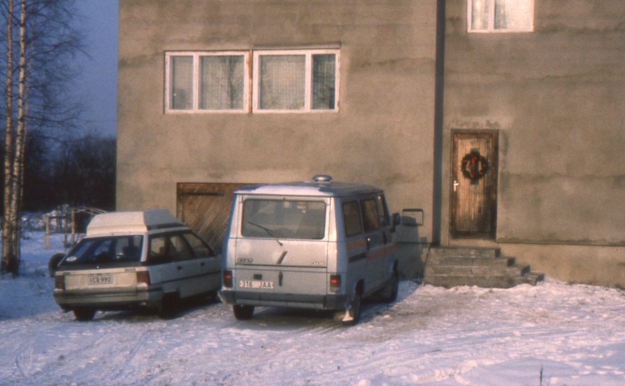 Kuva Haamerin perheen kodin edustalta ensimmäisen kouluvierailuni yhteydessä kevättalvella 1993